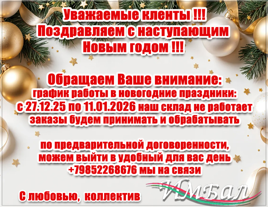 ❄❄❄ Поздравляем с наступающим Новым Годом! ❄❄❄ Пусть 2026 год подарит вам счастье, радость, добро, взаимопонимание и неисчерпаемый источник вдохновения. С 27.12.2025 по 11.01.2026(вкл) выходные, заказы будем принимать и обрабатывать, по мере поступления
