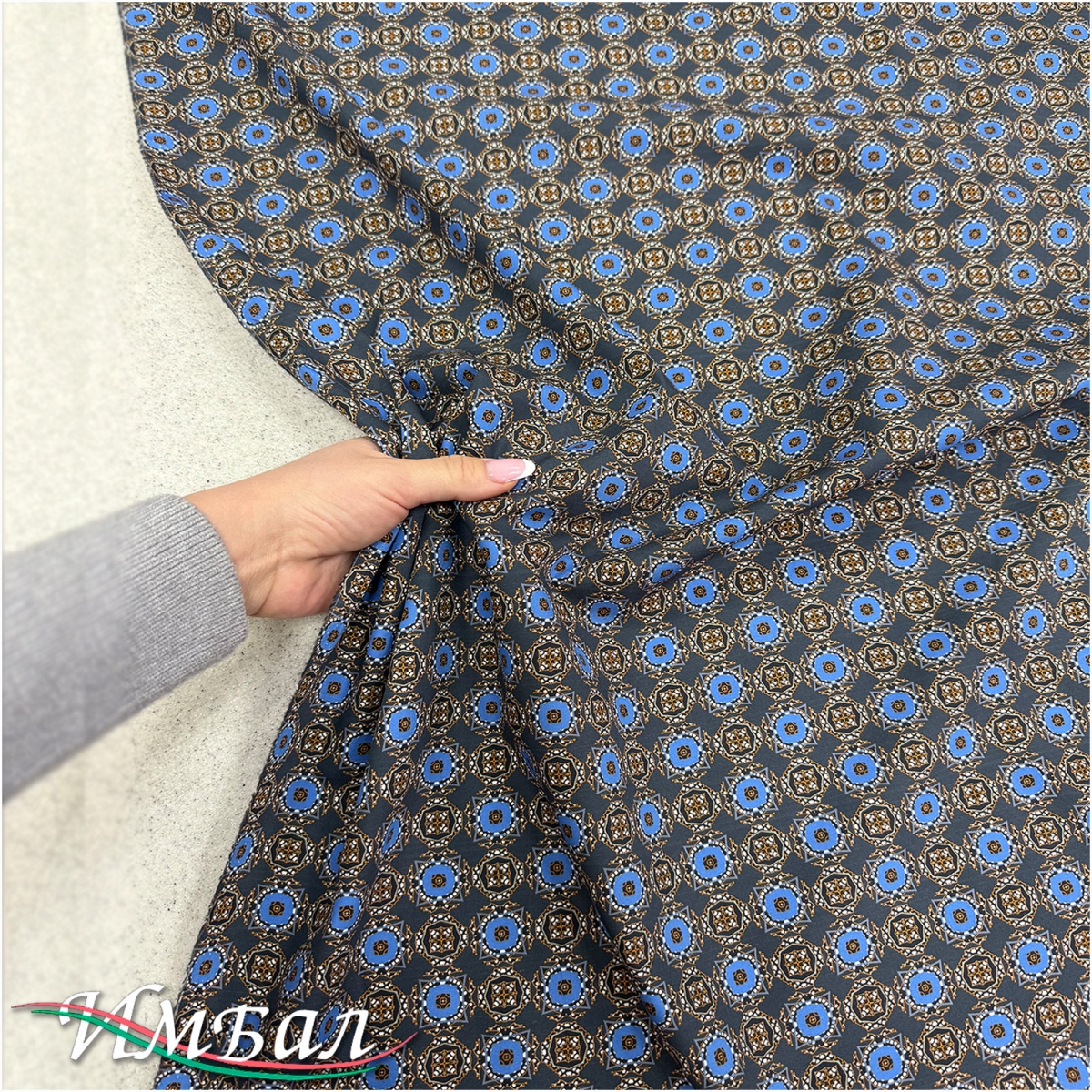 Хлопок стрейч плательно-рубашечный геометрия в сине-серых тонах