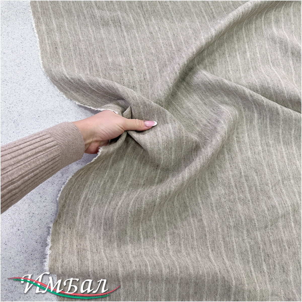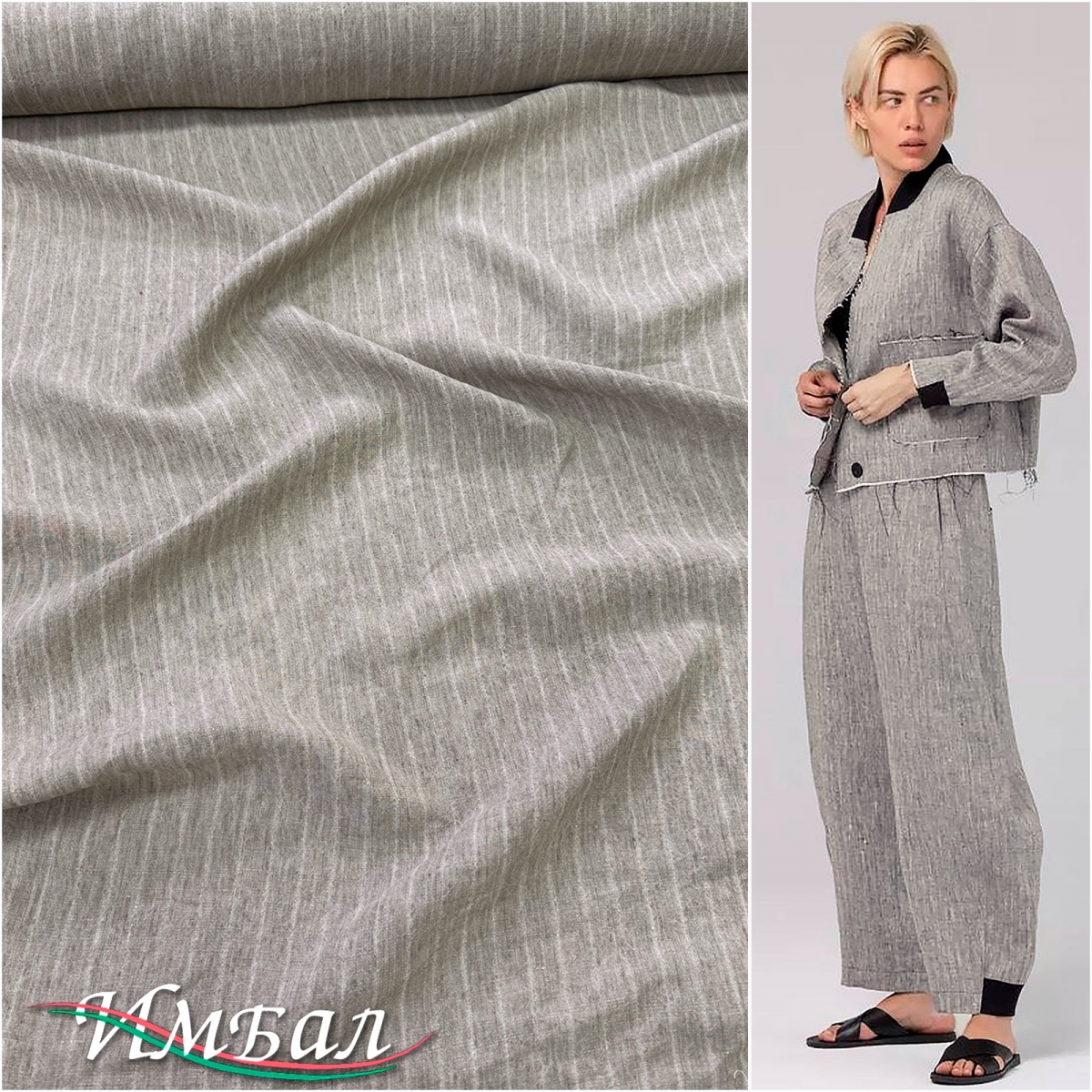 Лен костюмно-плательный стиль бохо полоски серо-бежевого цвета