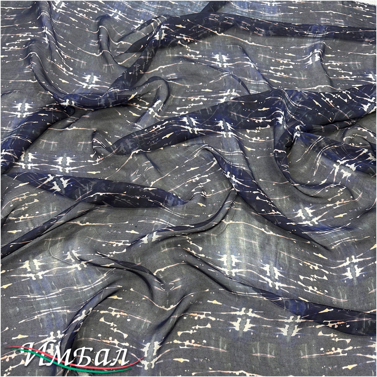 Муслин вискоза с шелком дизайн Kenzo абстракция в сине-белых тонах