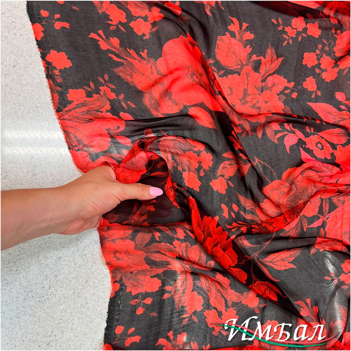 Вискоза плательная принт красные цветы на молочном фоне