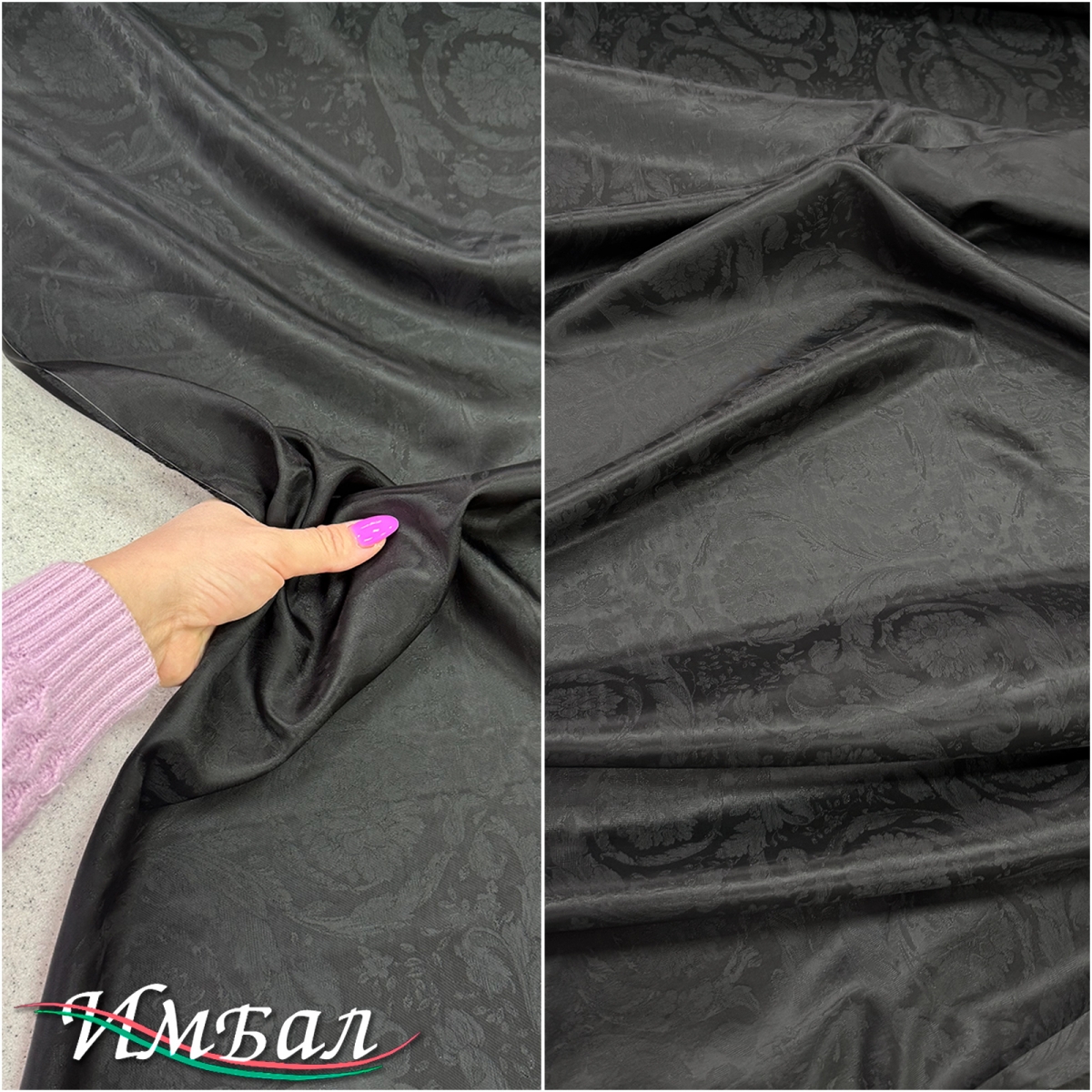 Подкладка жаккардовая дизайн Versace с узором черного цвета