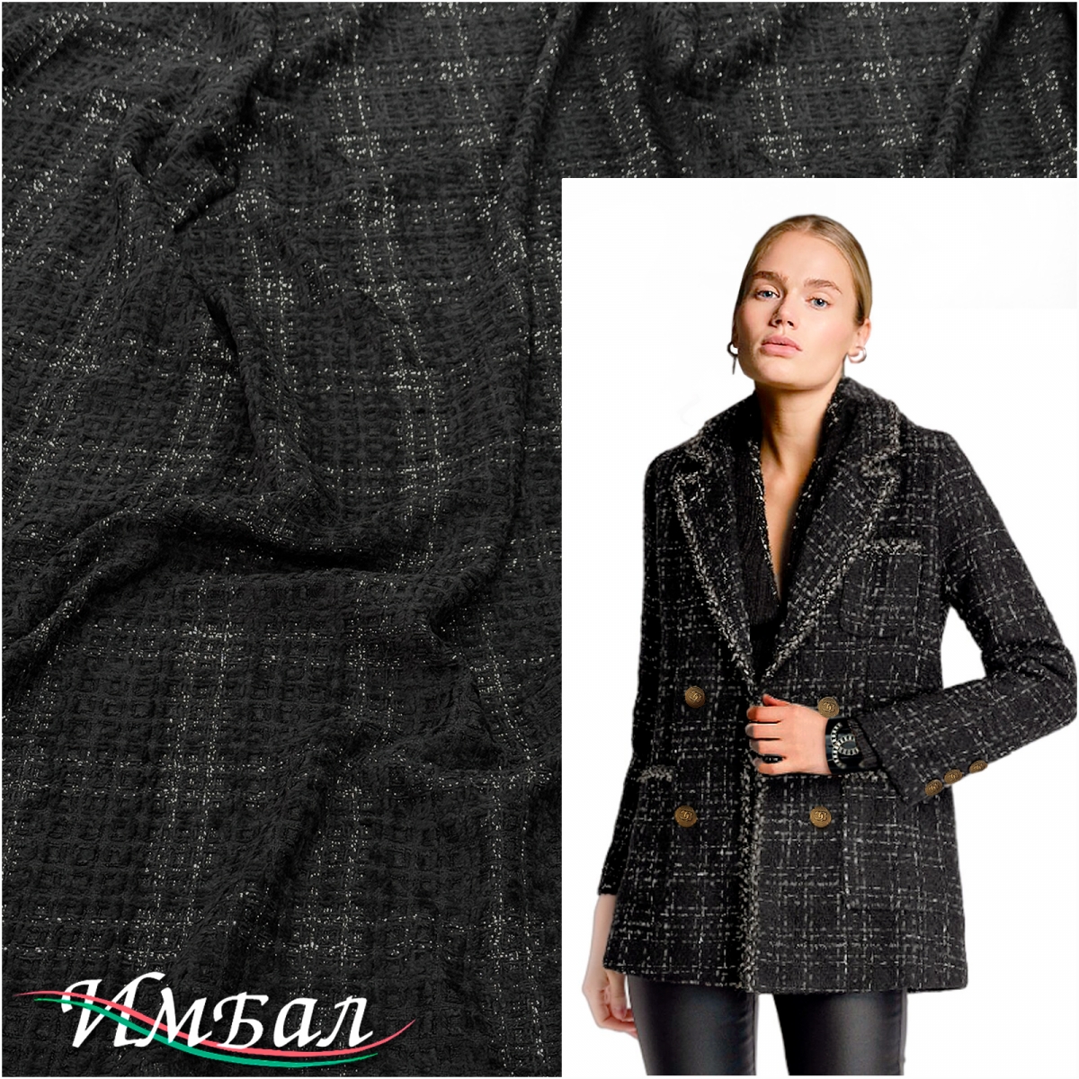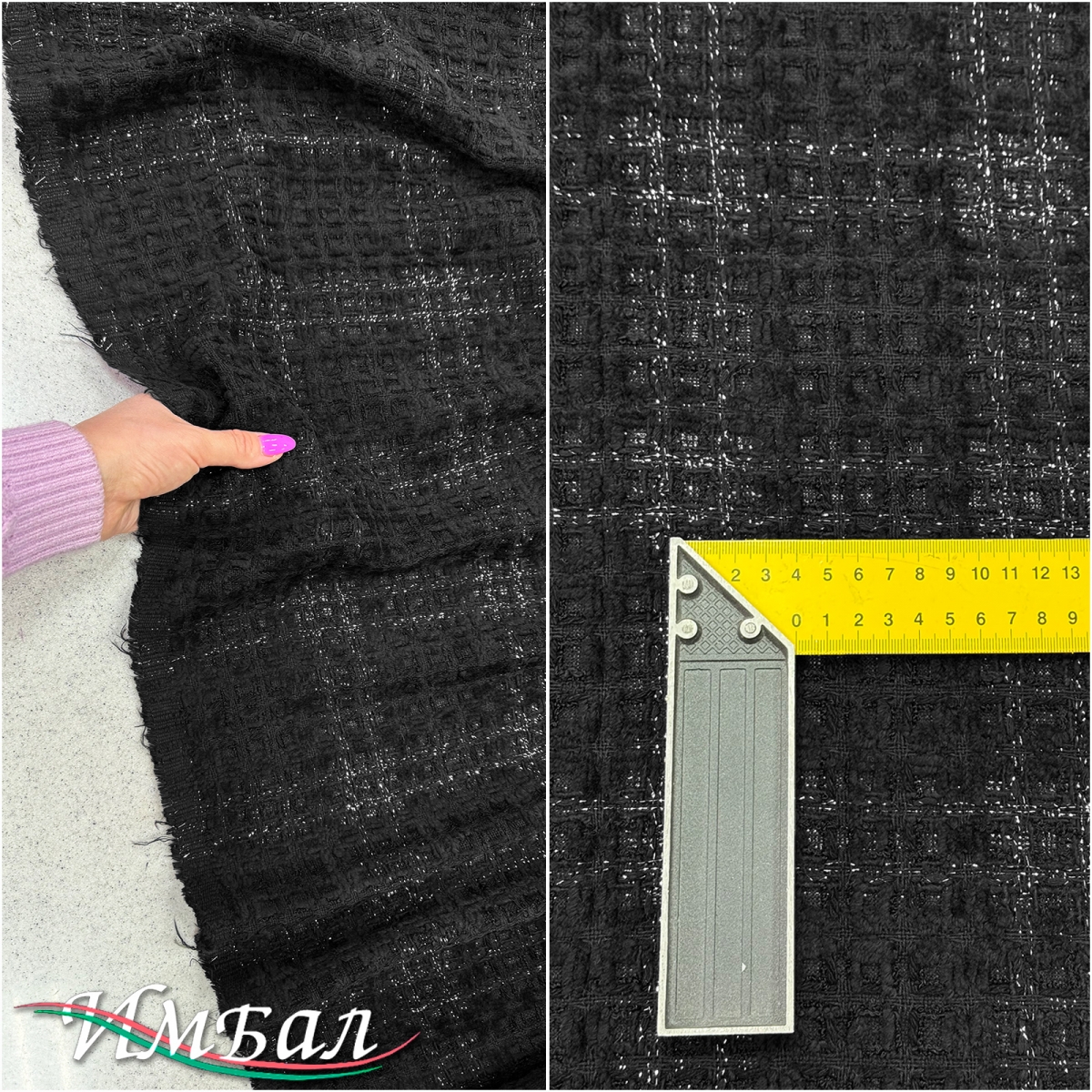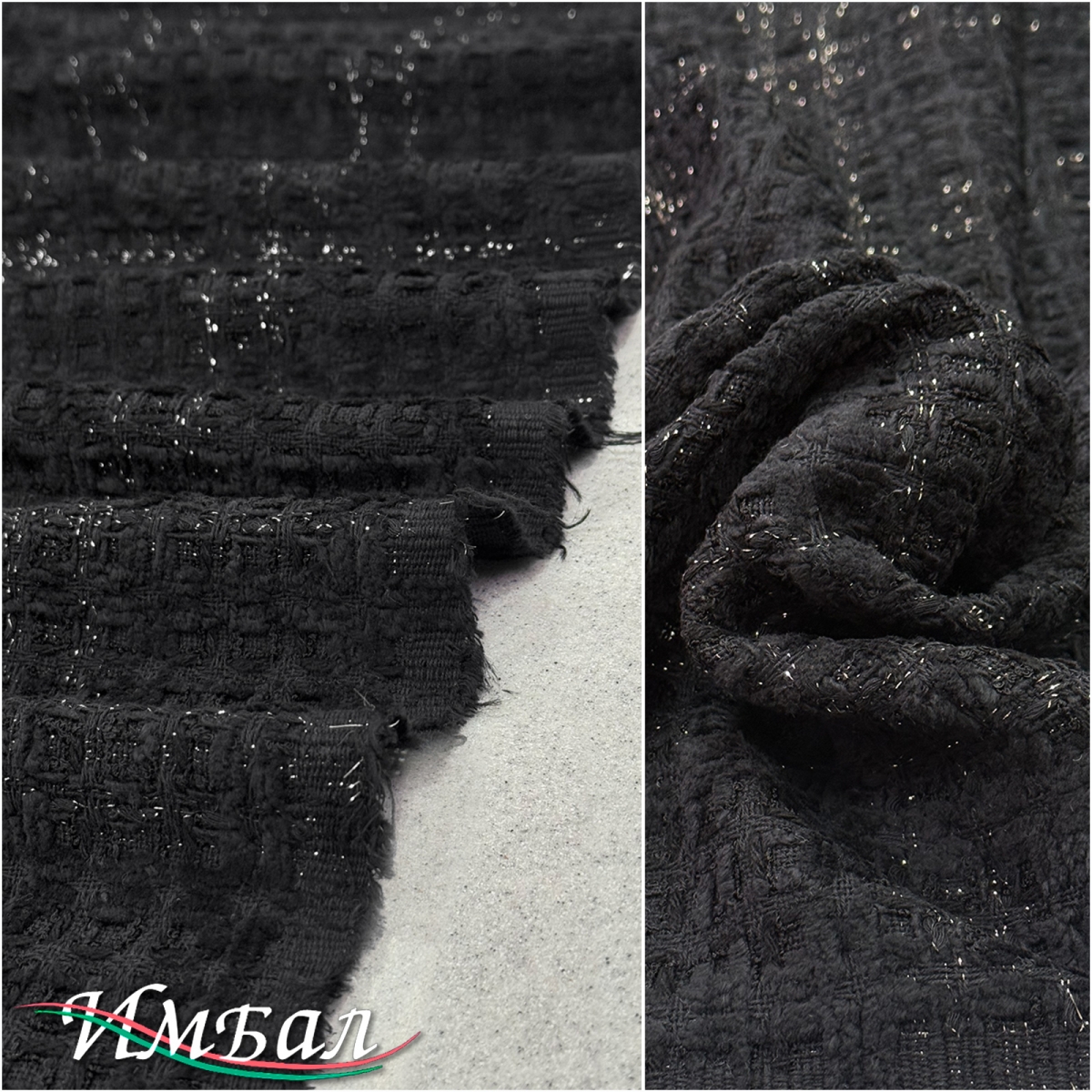 Шанель костюмно-плательная фактурная нежная клетка с люрексом черного цвета