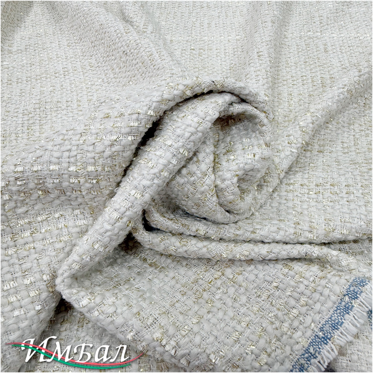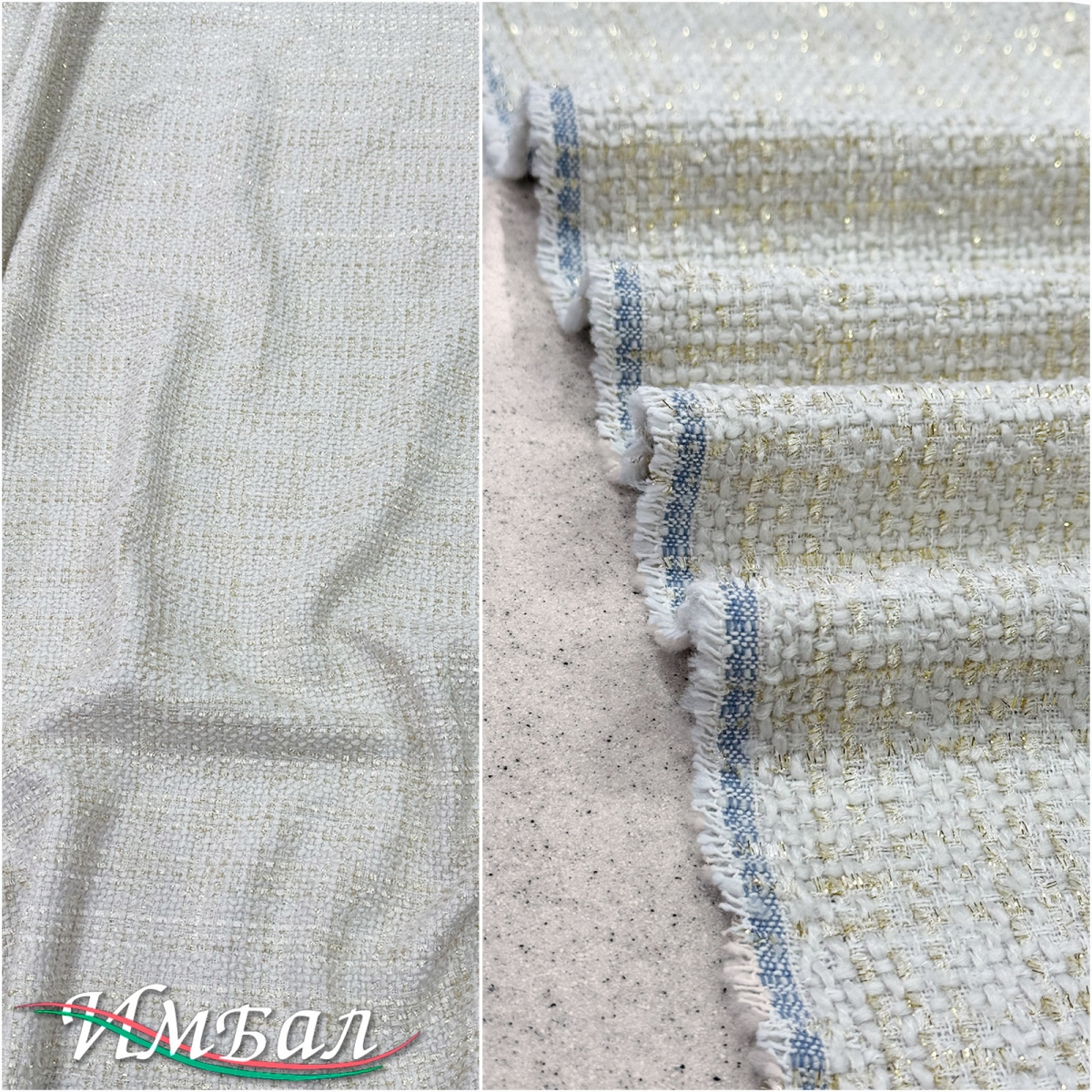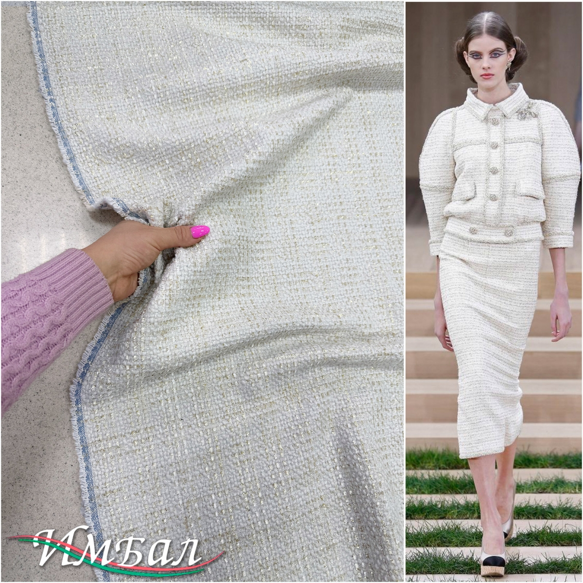 Шанель костюмно-плательная нарядная перламутрового цвета с золотистым люрексом