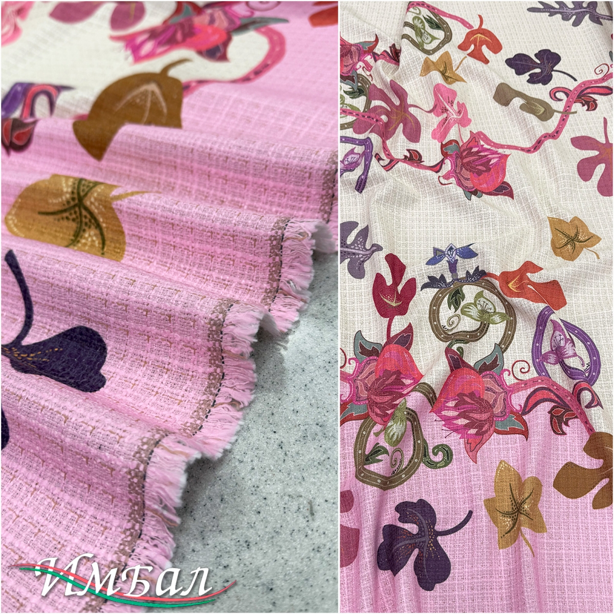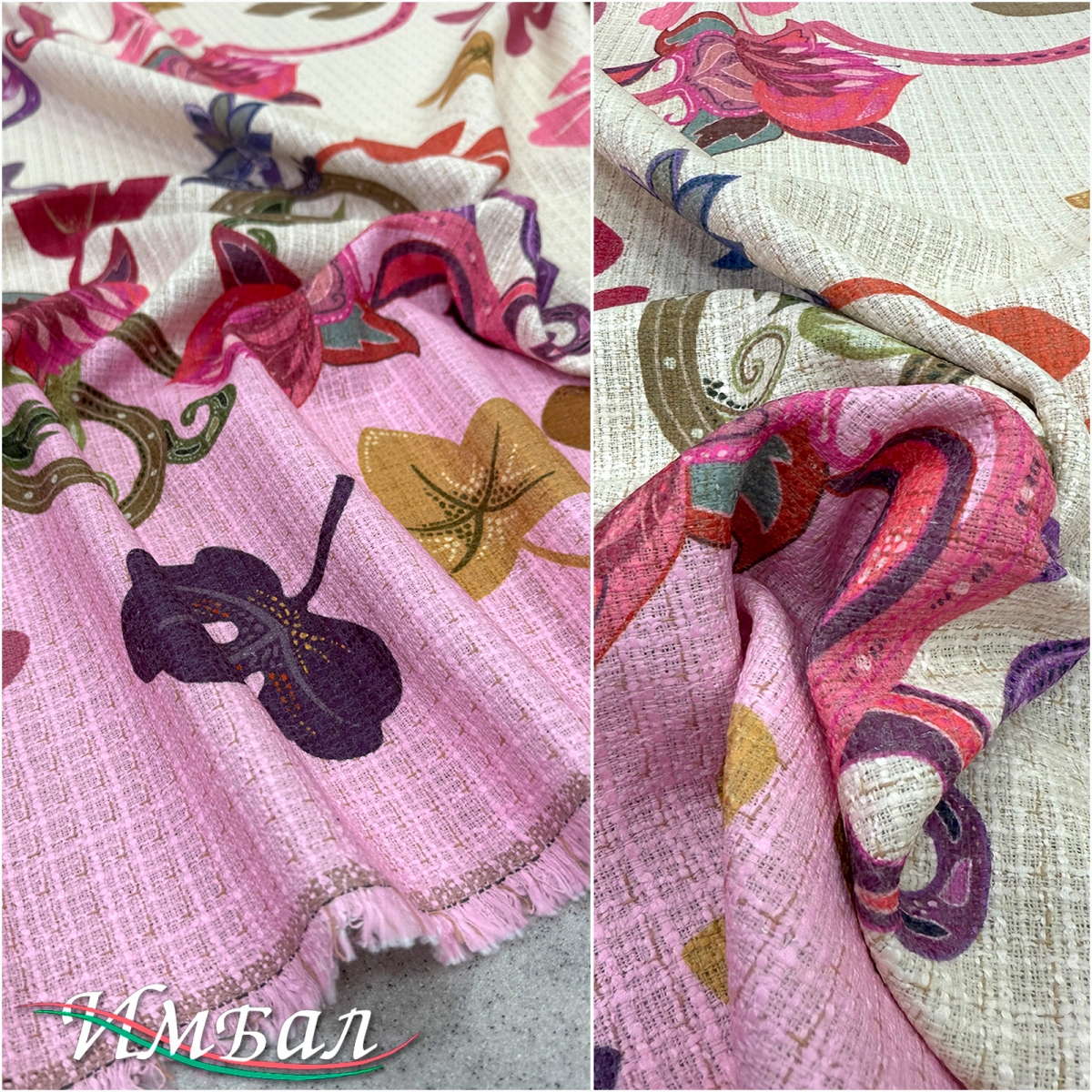 Шанель нарядная костюмная типа рогожки продольный купон в ванильно-розовых тонах