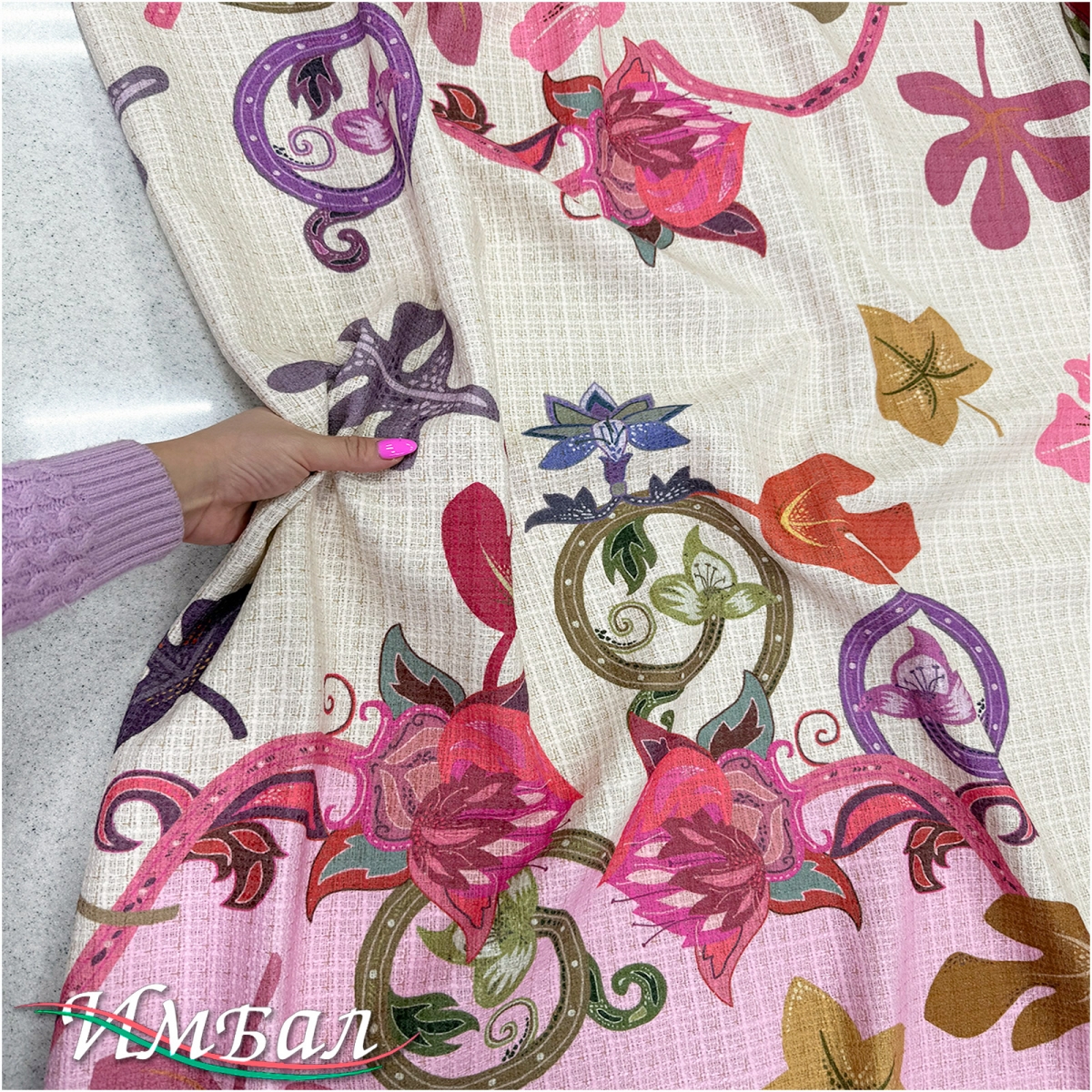 Шелк матовый стрейч дизайн D&G платок 135 х 135 см цветы на черном фоне