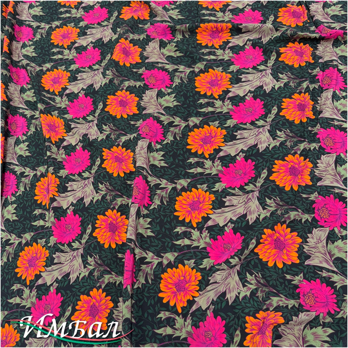 Шелк матовый стрейч дизайн D&G платок 135 х 135 см цветы на черном фоне