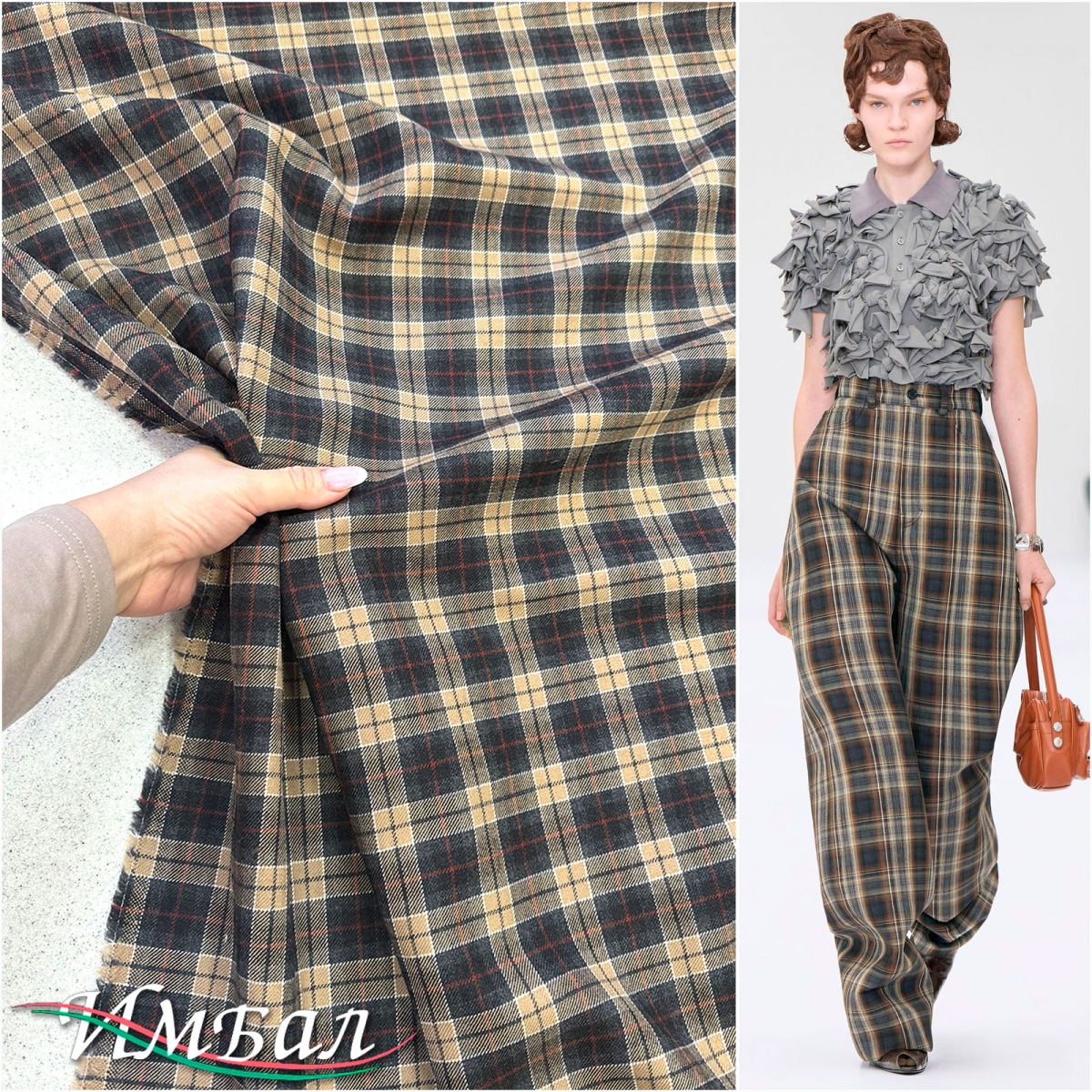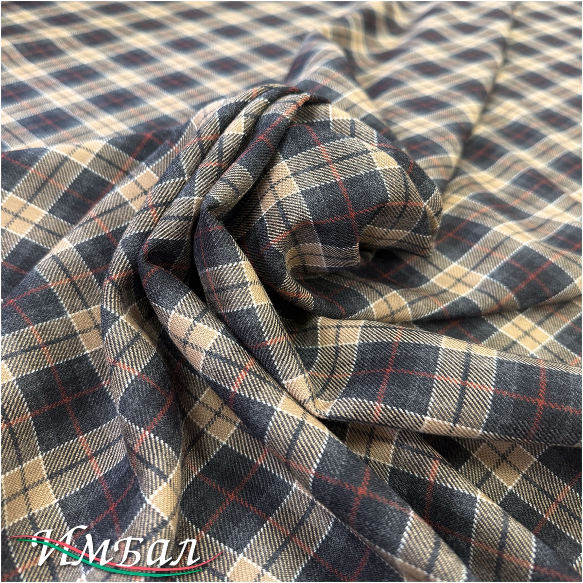 Ткань костюмно-плательная Versace мягкая клетка в желто-красно-зеленых тонах