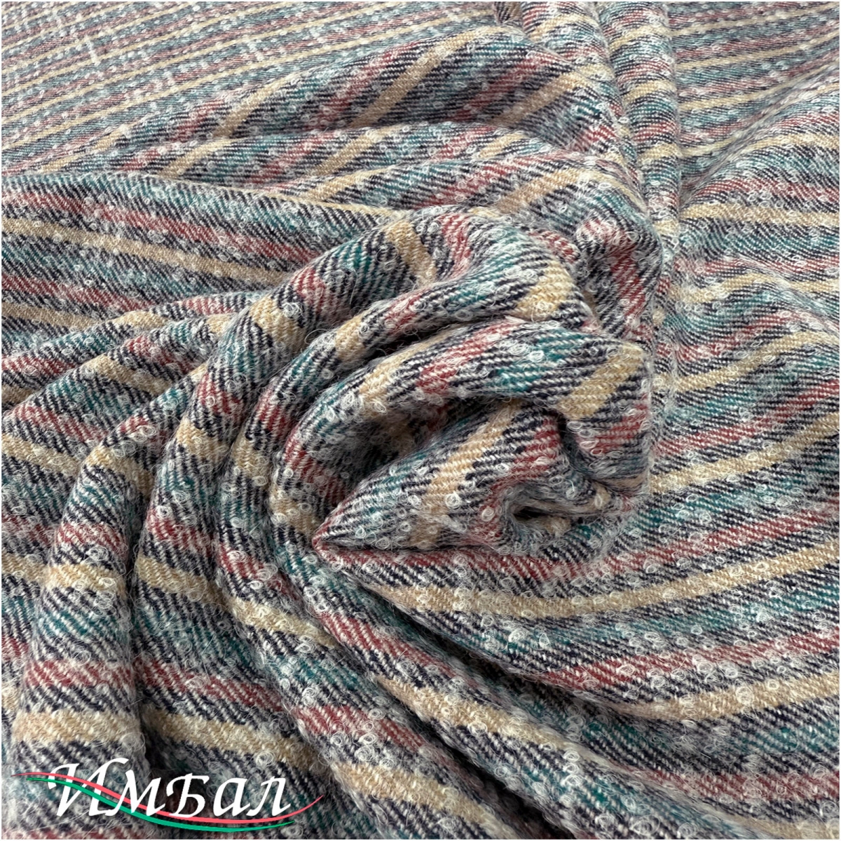 Ткань костюмная шерстяная буклированная дизайн Sportmax приглушенные полоски
