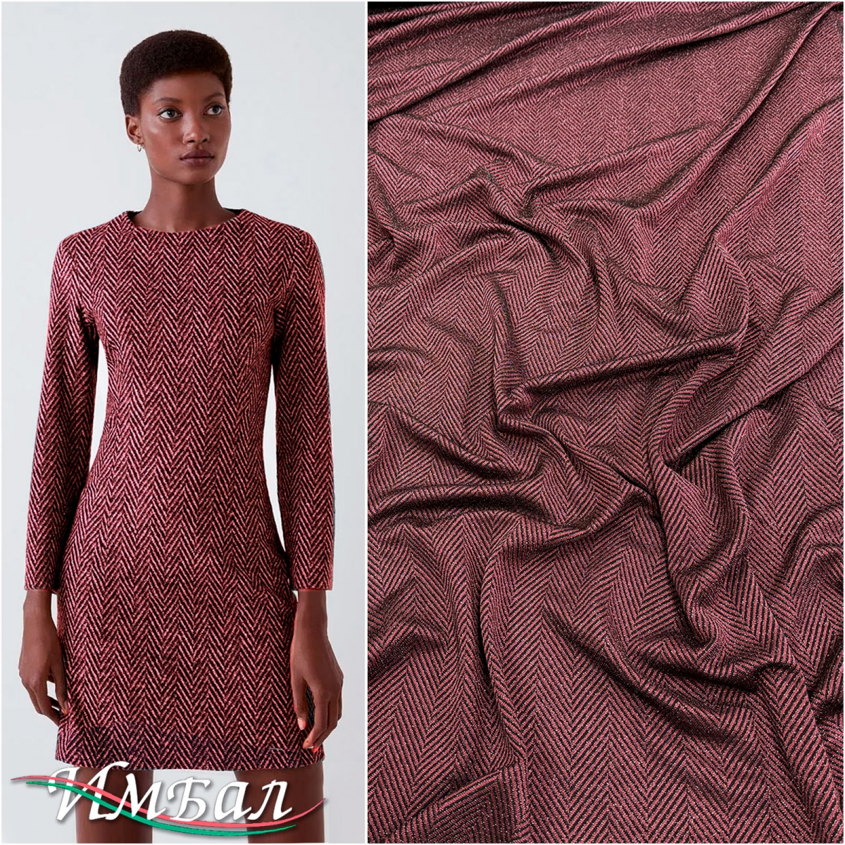 Трикотаж нарядный стрейч дизайн Pinko елочка цвета бордо с люрексом