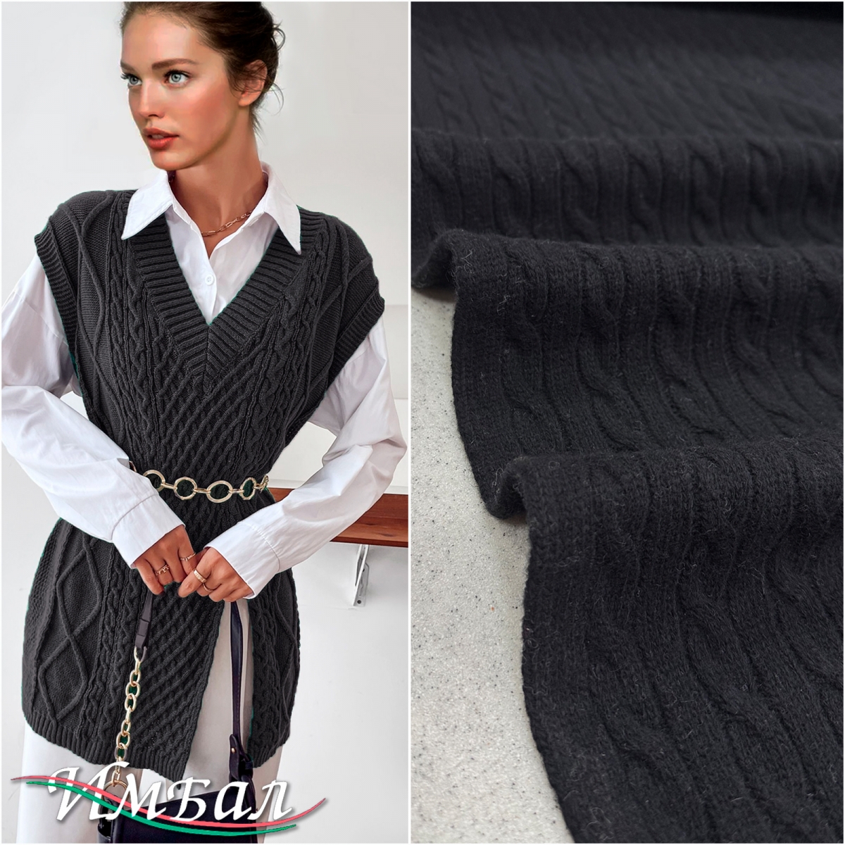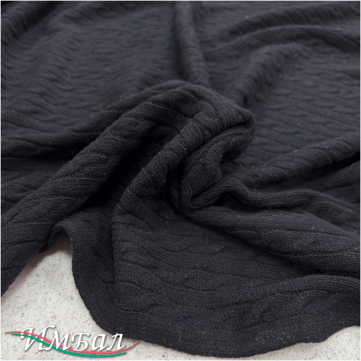 Трикотаж шерстяной с ангорой стрейч вязаные косы черного цвета