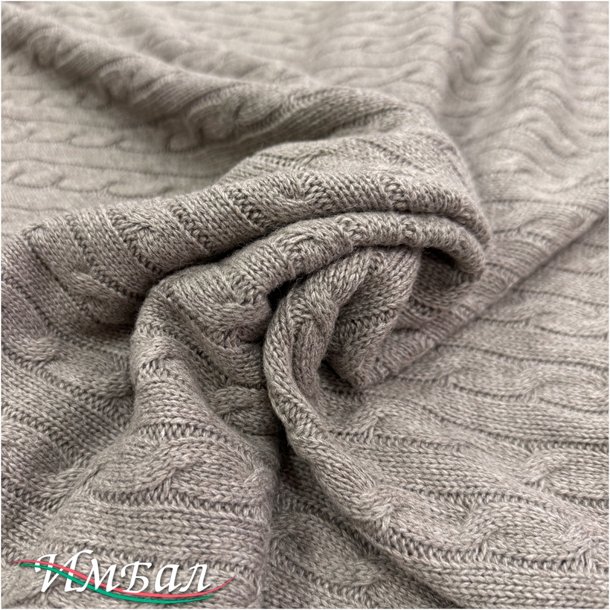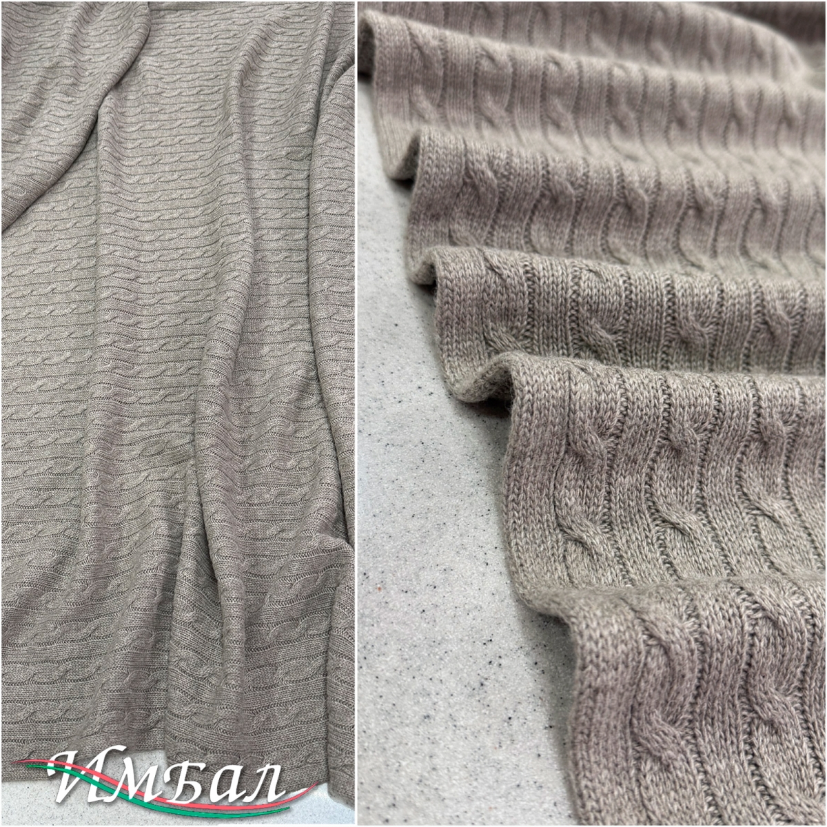 Трикотаж шерстяной с ангорой стрейч вязаные косы серо-бежевого цвета