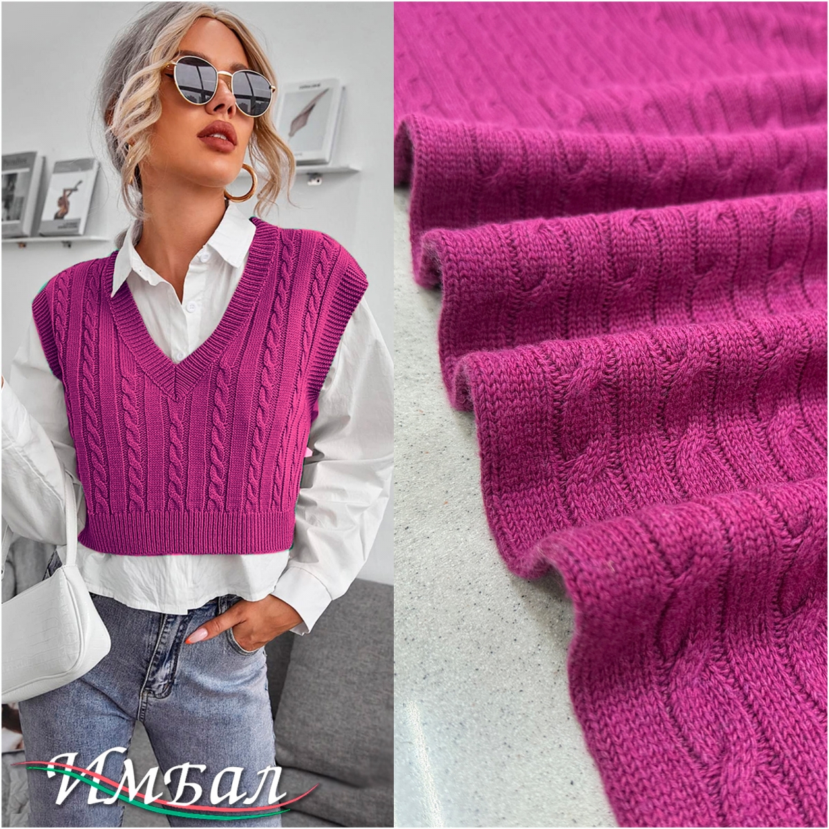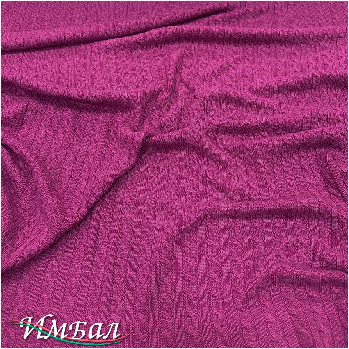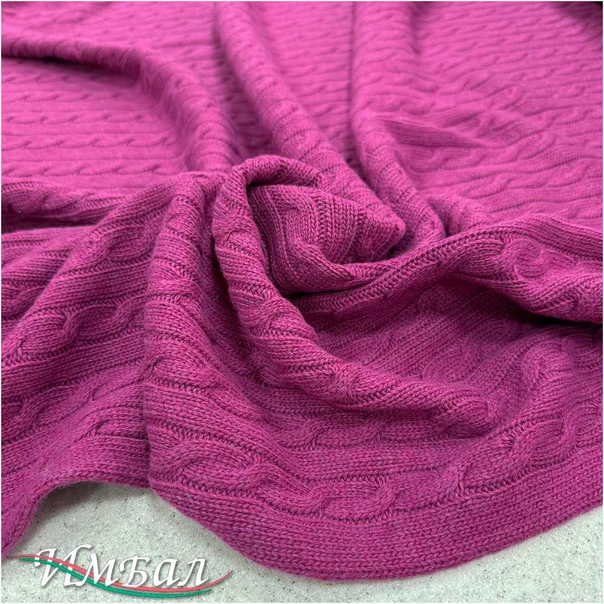 Трикотаж шерстяной стрейч вязанный с косами цвета фуксия