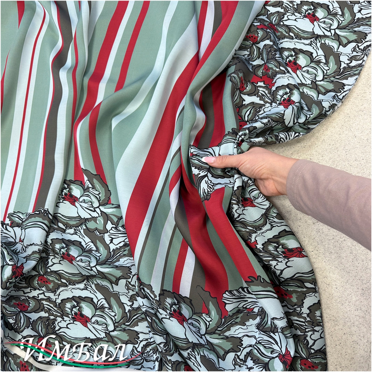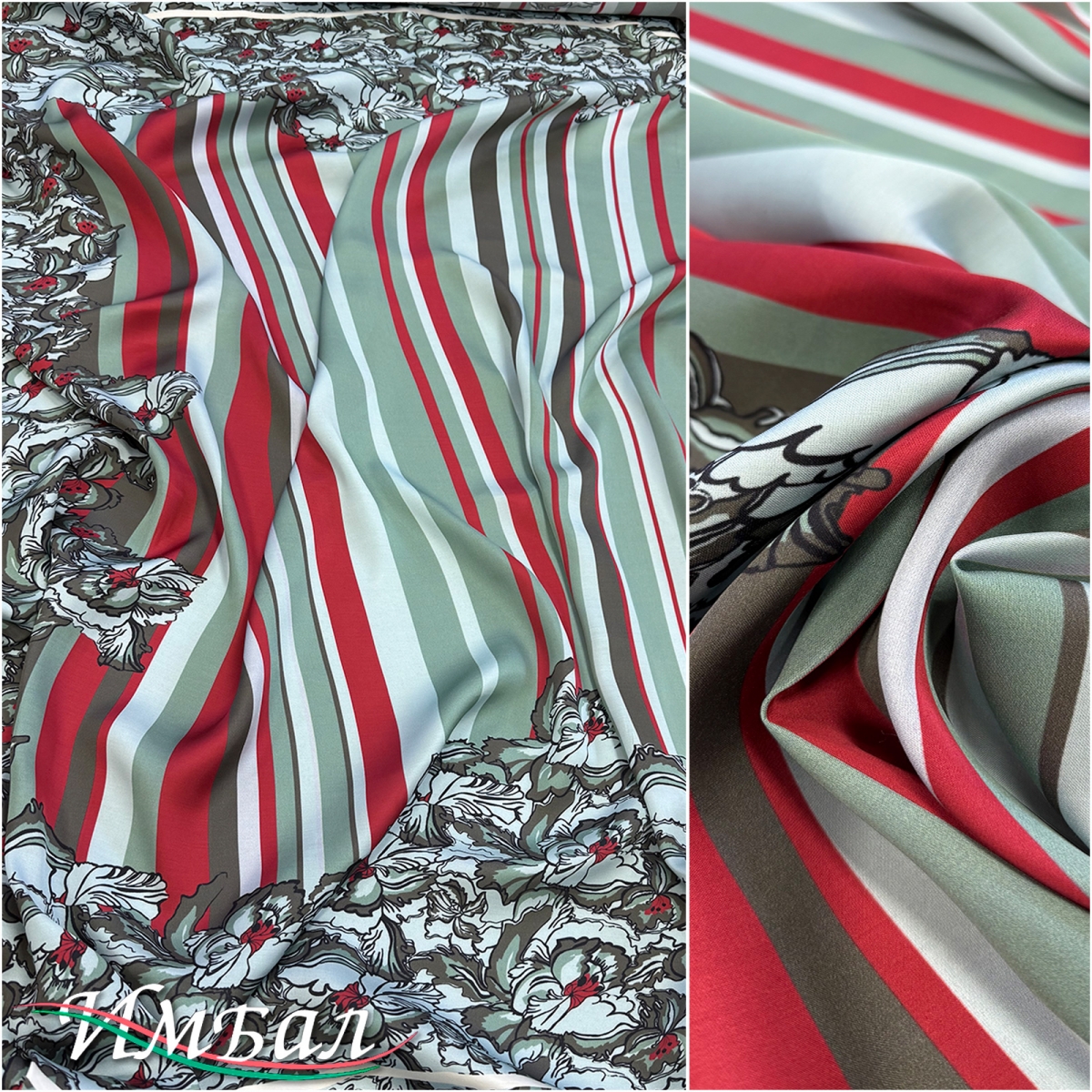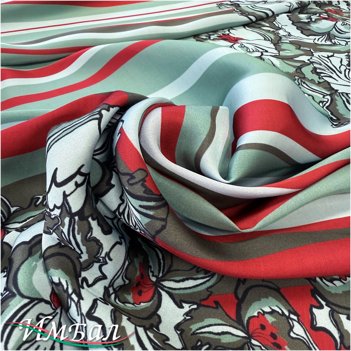 Вискоза поплин дизайн Aspesi купон в ментолово-красных тонах